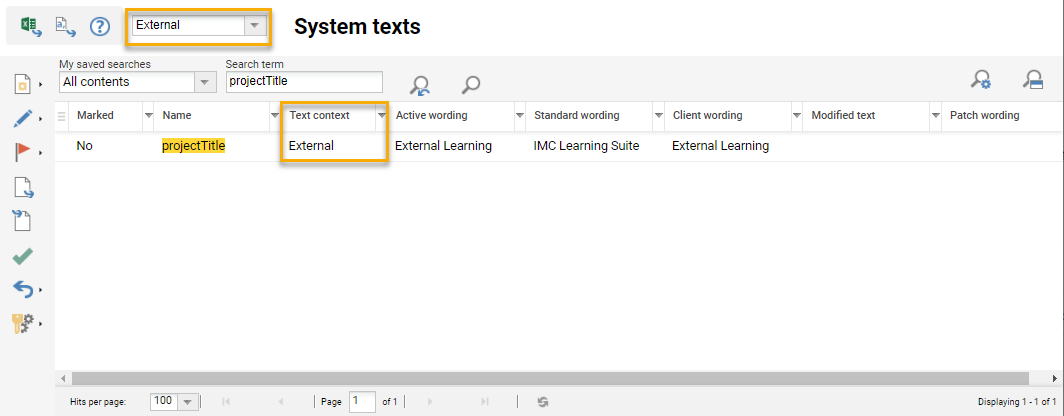 Sobald ein Bundle bearbeitet, gespeichert und als mandantenspezifisch aktiviert wurde, wird die Spalte „Textkontext“ so aktualisiert, dass der Name des Mandanten anstelle von „Global“ angezeigt wird.