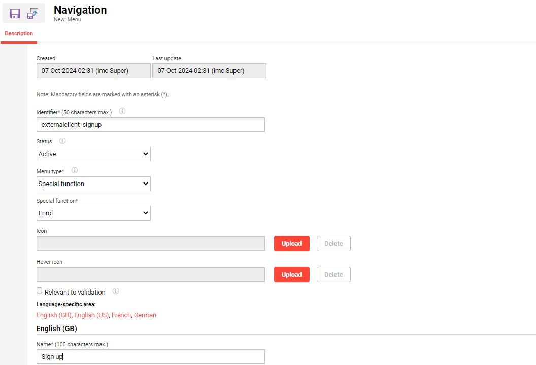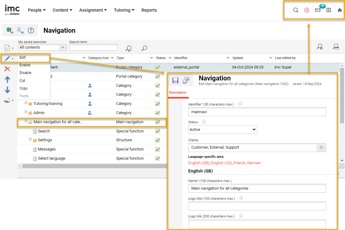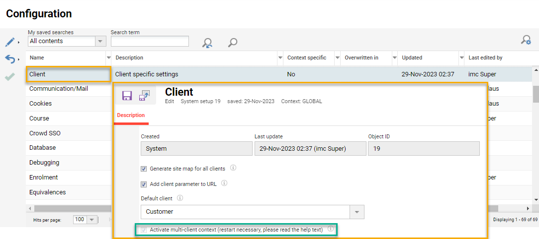 Der nächste Schritt besteht darin, die erforderliche Anzahl von Clients zu erstellen. Im Wesentlichen wird es einen Hauptmandanten und Untermandanten geben, die zur logischen Unterteilung des Systems dienen. Eine beliebige Anzahl von Mandanten kann mit ihren eigenen spezifischen Konfigurationseinstellungen, Formulierungen, Regeln, Schnittstellen und gebrandeten Skin-Designs erstellt werden. Die Mandantenfunktion wird aufgrund der vielen wichtigen Einstellungen typischerweise von imc Business Consultants konfiguriert, die Konfiguration kann aber auch von Systemadministratoren vorgenommen werden. Bei der Erstellung eines Mandanten stehen alle Registerkarten und Einstellungen zur Verfügung, bei der Bearbeitung eines Mandanten jedoch nur dann, wenn der Kontext „Global“ bearbeitet wird.