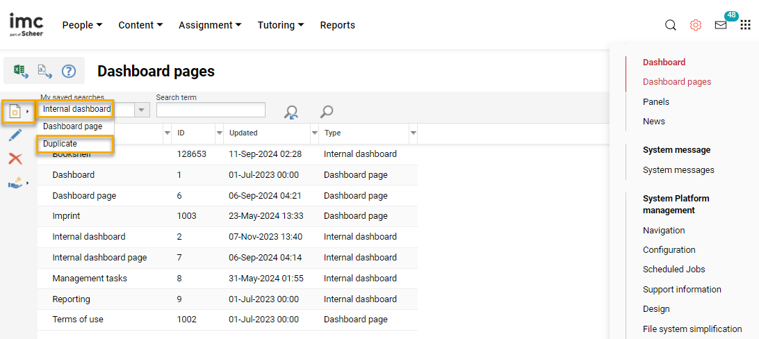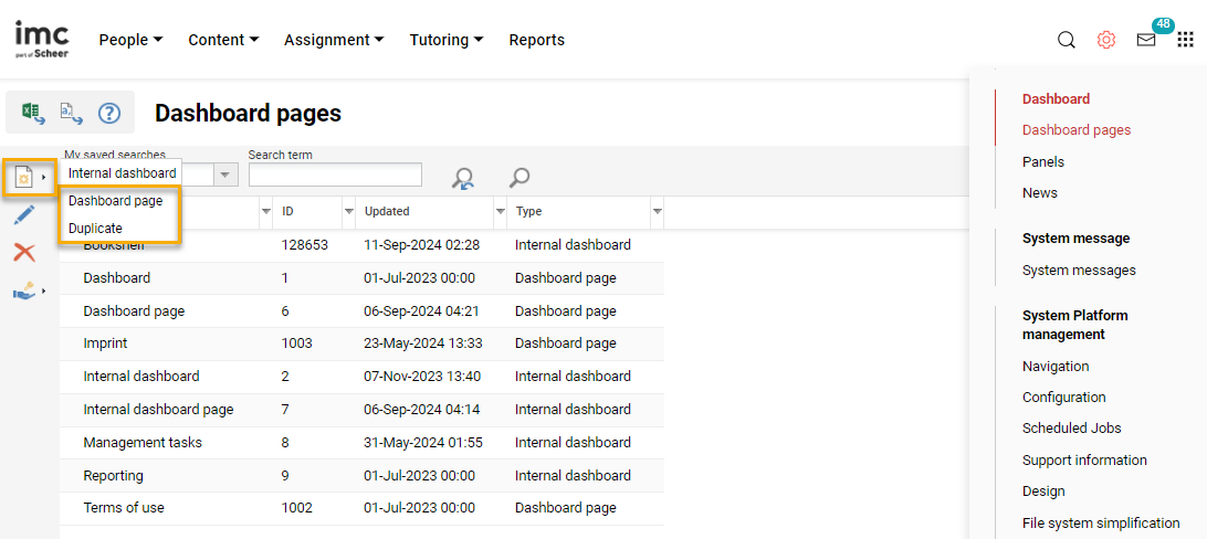 Über das Menü Dashboardseiten können die Dashboards der Kunden bearbeitet werden?