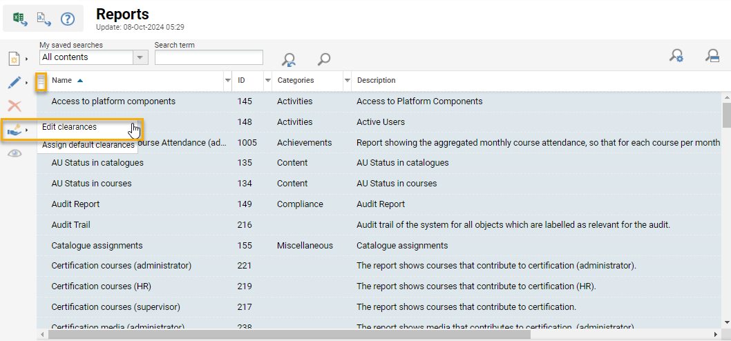 Reporting ist ein weiterer Bereich, in dem einige Konfigurationsänderungen vorgenommen werden müssen, da die Nutzer die Freigabe benötigen, um Berichte über Berichte (Learning Analytics) und das Berichts-Dashboard anzuzeigen. Das bedeutet, dass neuen Benutzergruppen, die Zugang zu Berichten benötigen, über das Menü „Einstellungen > Berichte > Berichte“ eine Freigabe erteilt werden muss. Dies lässt sich am effizientesten durch die Auswahl aller Berichte und die anschließende Zuweisung von Freigaben bewerkstelligen; beachten Sie jedoch, dass es benutzerdefinierte Berichte gibt.