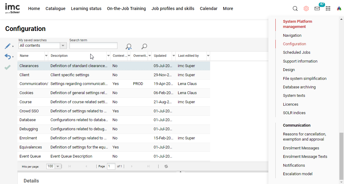 Aus funktionaler Sicht ist der Großteil der Funktionen und Schnittstellen in der imc Learning Suite darauf ausgelegt, mandantenspezifische Szenarien zu unterstützen. Das bedeutet, dass jeder Client in einem logisch getrennten Mehrmandantensystem eine eigene Konfiguration und eigene Schnittstellen haben kann, um sich von den anderen Clients zu unterscheiden. Es gibt jedoch einige Einschränkungen, wie z. B. die Nutzerbereitstellung mit der SCIM-API, bei der nur ein einziges Mapping möglich ist, und viele plattformübergreifende Konfigurationseinstellungen. Die größte Überlegung bei einer logischen Trennung ist, dass es einen Standard-Client und einen Systembesitzer mit voller Sichtbarkeit geben muss; bei einer physischen Trennung wird der Aktualisierungsplan von imc bestimmt und eine echte STAGE-Umgebung zum Vortesten von Patches vor einem PROD-Update wird derzeit nicht unterstützt.