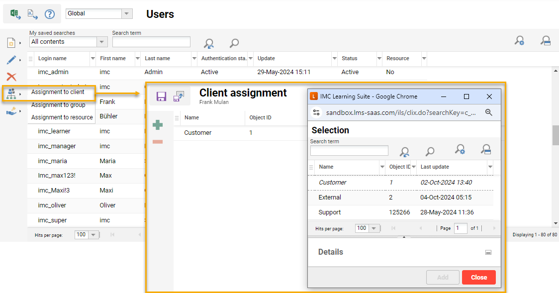 Werden neu angelegte Benutzer über das Backend der richtigen Kunden- und Lerngruppe zugewiesen?