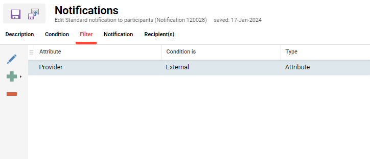 Benachrichtigungen können individuell konfiguriert werden, um entweder kunden- oder anbieterspezifisch zu sein. Diese Konfiguration erfolgt durch Duplizieren von Standardbenachrichtigungen und Vornahme der erforderlichen Einschränkungen für Filter oder Einstellungen auf den Registerkarten „Benachrichtigung“ und „Empfänger“. Im Gegensatz zu den Einschreibungsnachrichten gibt es jedoch keine Massenduplizierungsfunktion und Freigaben werden nicht berücksichtigt.